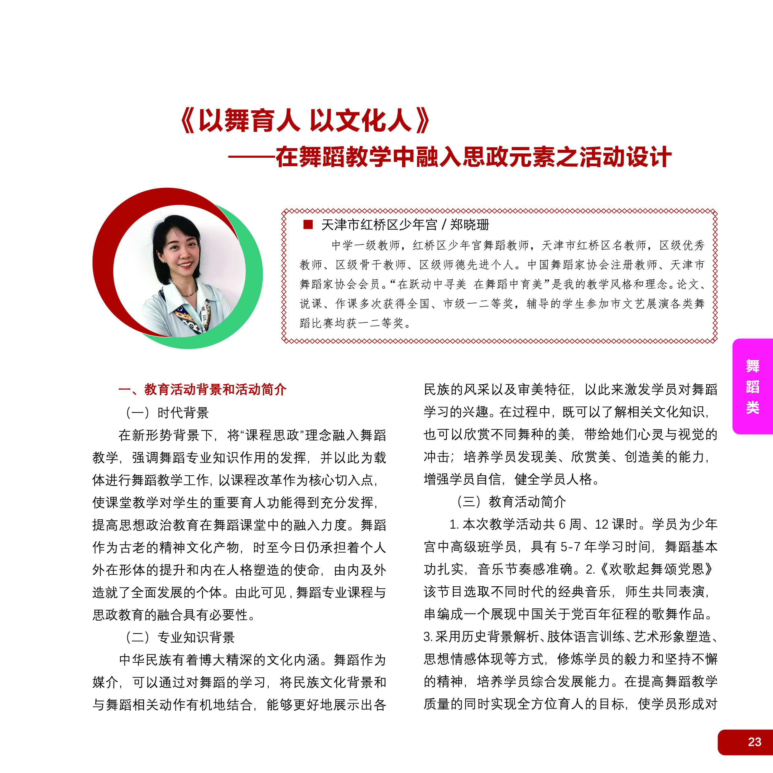 《以舞育人以文化人》——在舞蹈教学中融入思政元素之活动设计——郑晓珊