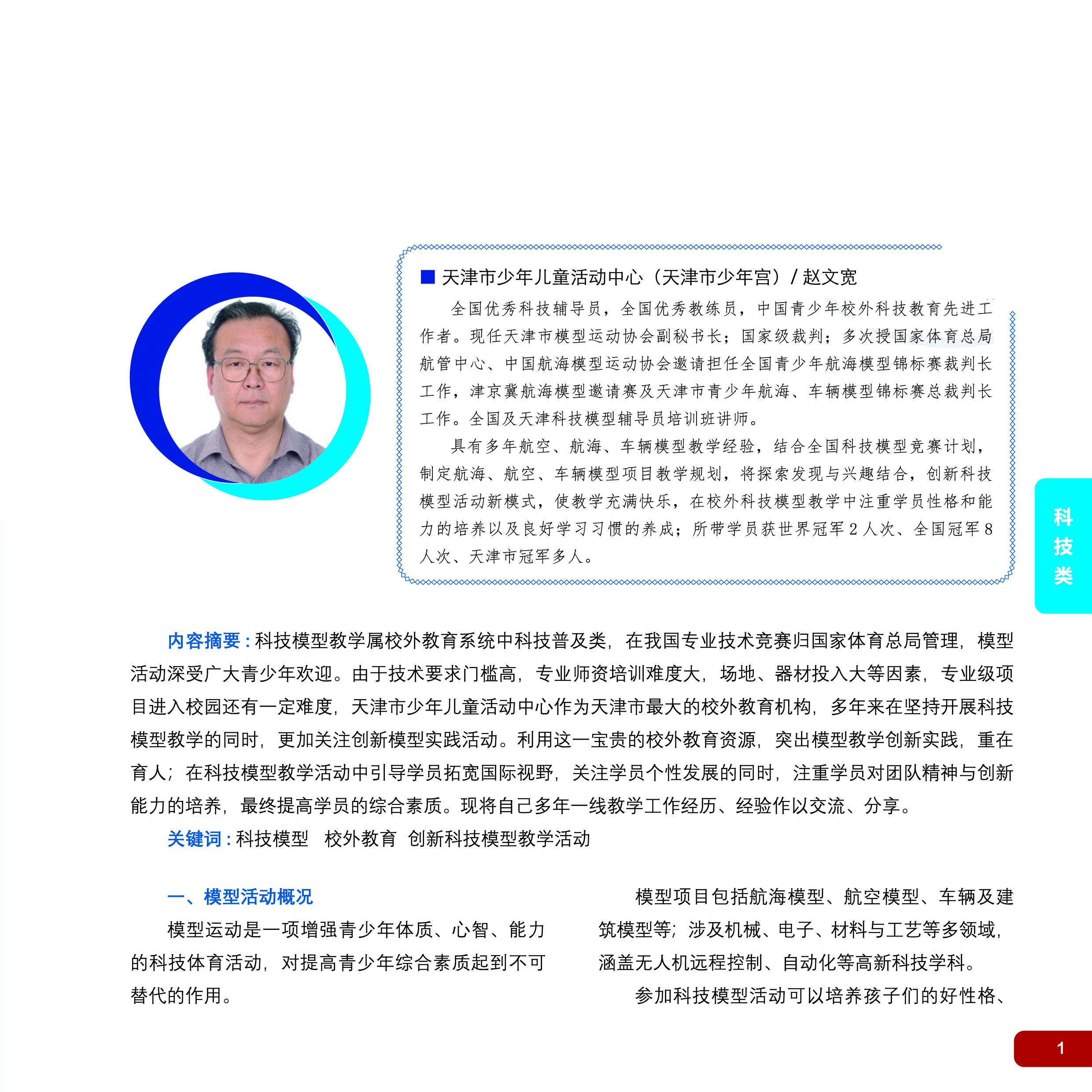 天津市少年儿童活动中心科技模型教学活动与实践——赵文宽