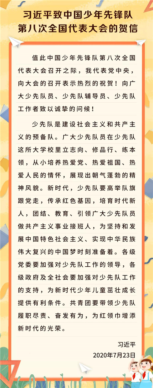习近平致中国少年先锋队第八次全国代表大会的贺信