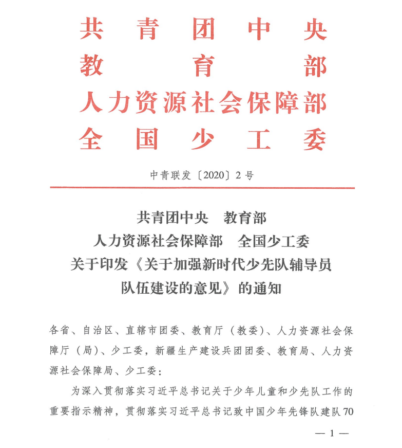 关于加强新时代少先队辅导员队伍建设的意见