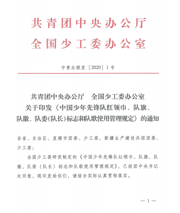《中国少年先锋队红领巾、队旗、队徽、队委(队长)标志和队歌使用管理规定》(PDF版)