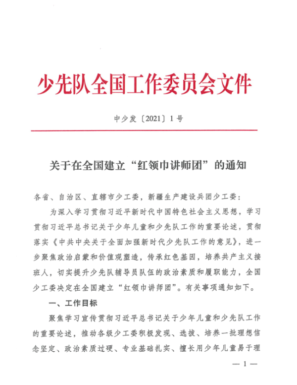 关于在全国建立“红领巾讲师团”的通知(Word版)