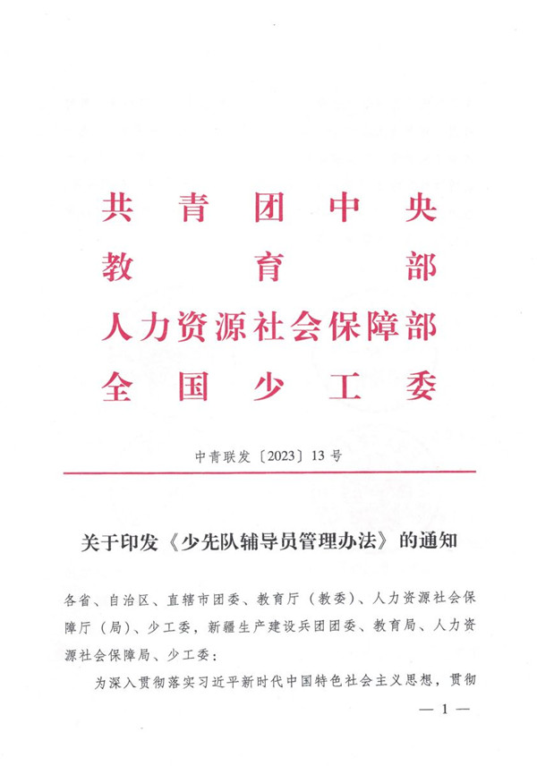 共青团中央 教育部 人力资源社会保障部 全国少工委关于印发《少先队辅导员管理办法》的通知